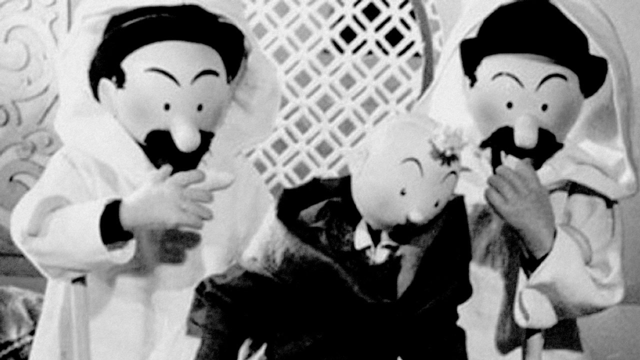 Tintin finds himself involved in a mystery related to a drowned man, a can of crabmeat and a ship called Karaboudjan. After investigating the ship, Tintin discovers that the shipment of cans does not contain exactly crabmeat.