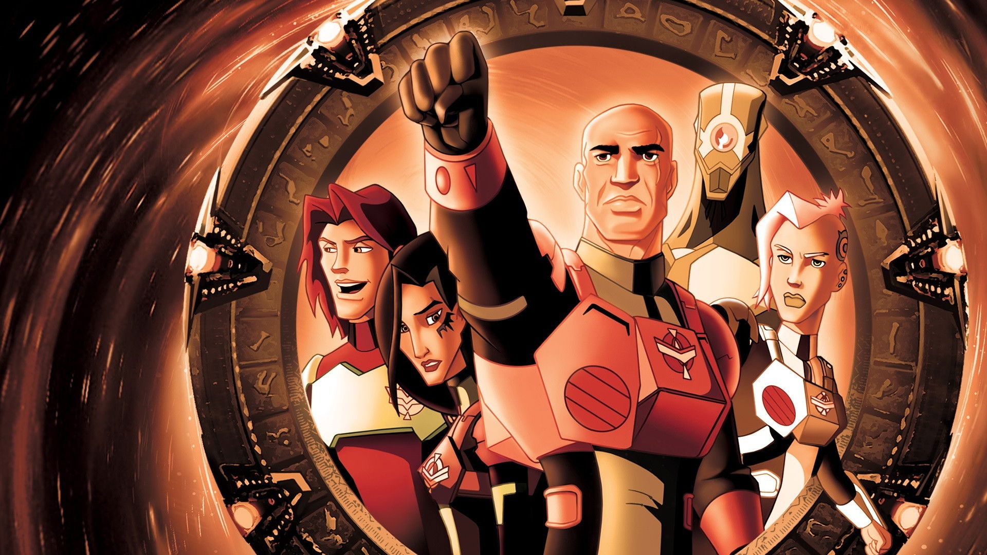 This DIC animated action-adventure series follows four exceptional Air Force Academy cadets and a wrongly court-martialed Stargate veteran as they travel planets through gated wormholes protecting a myst. Based on MGMs successful sci-fi franchise Stargate.