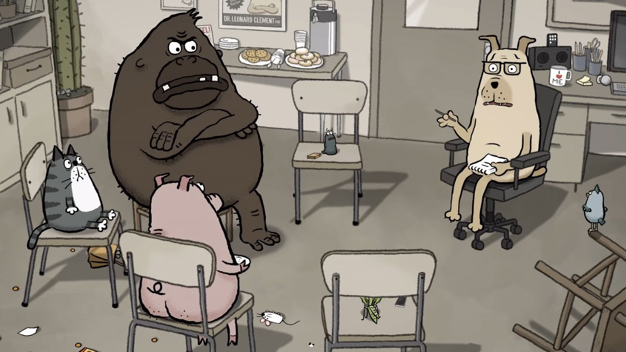 Five animals meet regularly to discuss their inner angst in a group therapy session led by Dr. Clement, a canine psychotherapist. The group includes Lorraine, a leech who suffers from separation anxiety; Cheryl, a praying mantis who can’t seem to keep a man; Todd, a pig with an eating disorder; Jeffrey, a bird with guilt issues; and Linda, an obsessive-compulsive cat.