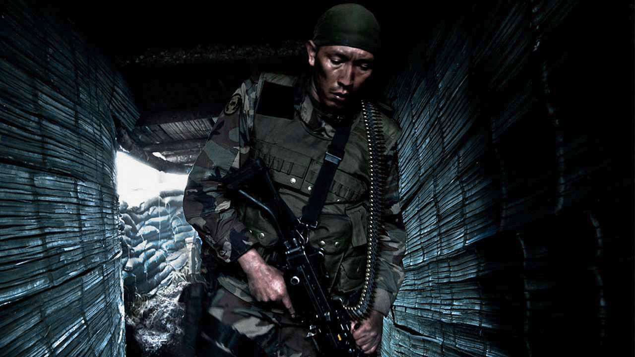 The air is thick with tension as a military squad proceeds to the foot of a mountain base, where they're ordered to wait for backup and hold their position. The mountain is shrouded in fog and the men are exhausted. They've been fighting guerrillas on enemy turf for some time, and they're worn down by the stress and anxiety of battle. The men don't want to wait; they want to charge up the hill, fearing that their comrades in the base have been overrun by the guerrillas. The squad's leader tries futilely to keep his men in line while dealing with his insolent second-in-command.